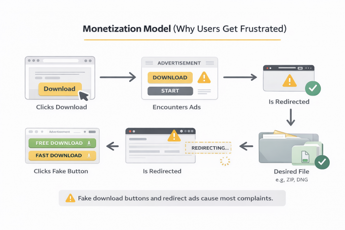 | Phishing Redirects | Medium | Fake download buttons are common |