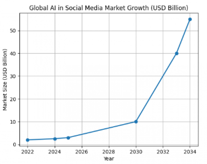 Line Graph: Global AI in Social Media Market (2022–2034)-