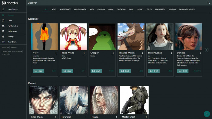 4. ChatFAI: Best for Familiar Character Experiences