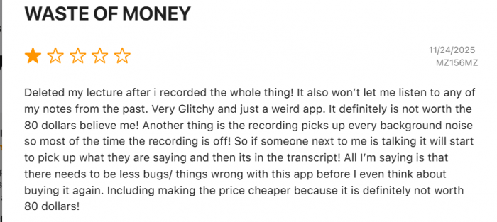 On the mobile side, App Store reviews of the Note Taker app are more mixed, users like the concept and see potential, but call out issues like bugs and occasional crashes. For me, that means I use the mobile app as a convenience tool, not a single point of failure before an exam.