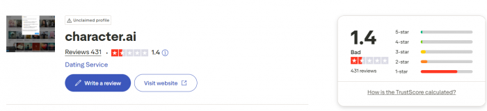 Character AI currently holds a low TrustScore of about 1.4 out of 5 on Trustpilot, based on several hundred reviews. Many reviewers complain about aggressive censorship, time limits, technical glitches, and recent policy changes, especially around filters and teen safety features. At the same time, a noticeable minority still praise Character AI for its emotional impact, comfort‑chat value, and the way some bots feel supportive and life‑changing despite the platform’s flaws.