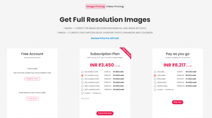 Everything revolves around credits. Each operation like processing an image for background removal costs a credit or two, depending on the complexity. Video operations cost more. You can see your balance ticking down as you work.