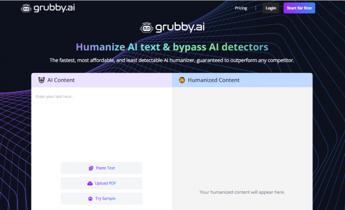 Grubby AI sits on the “fast and simple” end, designed for students and bloggers who want to quickly tweak AI drafts. It’s affordable and easy to use, but its ability to bypass strong detectors is inconsistent, and outputs may need manual cleanup.