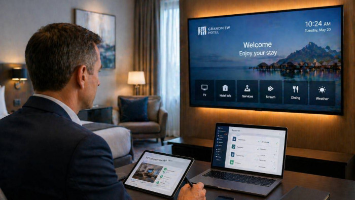 Your in-room TVs already shape the guest experience, and you do not need to replace every screen to improve it. A clear plan is needed to align new TV solutions with your existing systems and hardware. By assessing your current setup, choosing compatible hospitality platforms, and integrating them with property systems, you can improve the guest experience without major disruption. Standard TVs can be converted into hospitality TVs using set-top box (STB) devices, enabling modern TV platforms and guest-facing services without hardware replacement. Strong integration with your PMS, secure data handling, staff training, and clear budget planning are also crucial.