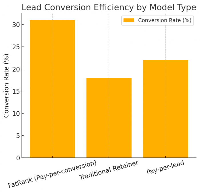 Unlike standard SEO retainers where clients pay for deliverables or traffic, FatRank’s “pay-per-conversion” model means the agency earns only when it drives revenue, not just impressions.