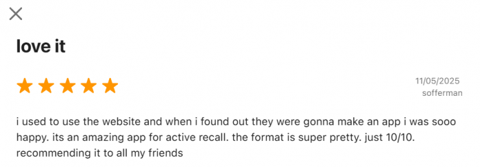 ● Fans rave about time saved and how the app made flashcards finally feel doable.