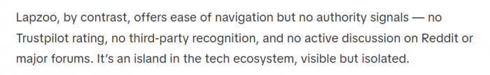 ● Independent reviews of Lapzoo echo the same feeling: a decent‑looking site fronting mostly generic, low‑authority content, not an established tech publication.