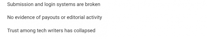 ● Some writers describe the initial experience as smooth, with simple publishing flow and apparent tracking, but become negative after delays in payouts or shifting terms, ultimately labeling the platform unreliable.