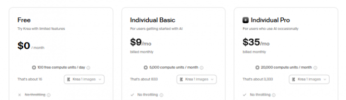 Unlike some competitors that cap free use tightly, the free tier on Krea often runs out quickly and pushes users toward paid plans something mentioned repeatedly by reviewers.