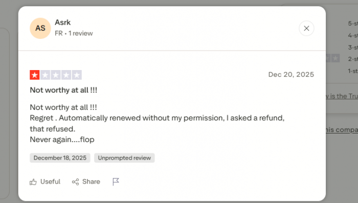 ✘ Trustpilot shows low overall satisfaction (~2.7/5).