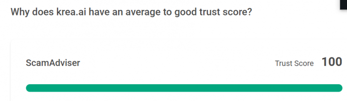 Another site, ScamMinder, also gives Krea a high trust score, noting that the use of SSL and clear service descriptions make it appear legitimate.