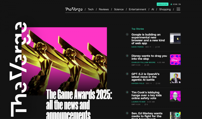 The Verge combines technology with culture, design, and policy, offering deep analysis and multimedia presentations. It excels at storytelling and context driven reporting.