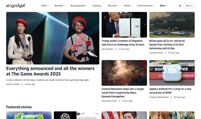 Engadget focuses heavily on hardware, consumer electronics, and hands on testing. It is ideal for readers who want grounded observations about products rather than general overviews.