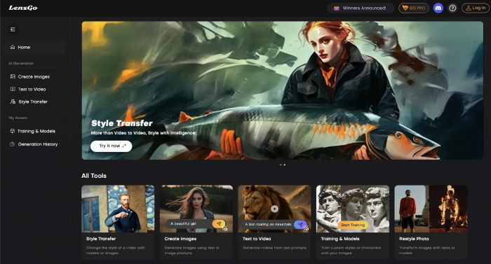 A user-friendly alternative specializing in video style transfer and animation, similar to LensGo’s Remix tool.