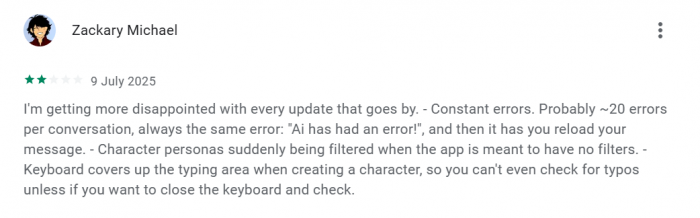 On supported devices, characters can speak using synthesized voices, which adds another emotional dimension. Latency is generally acceptable according to recent 2025–2026 reviews, though some users report occasional lag or bugs that break immersion, especially on older phones or during peak usage.