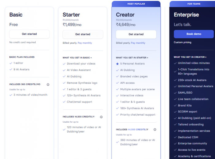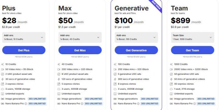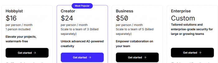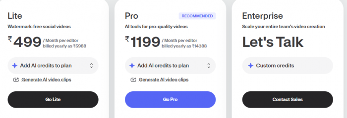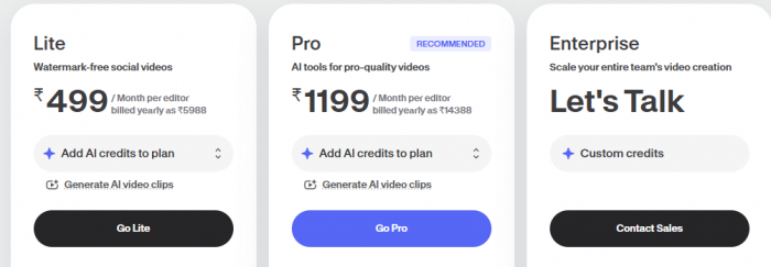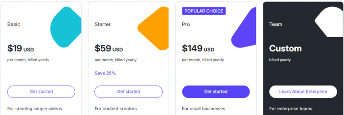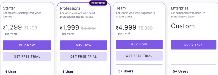 ● Paid plans range from $12 to $76 per month depending on features and output resolution