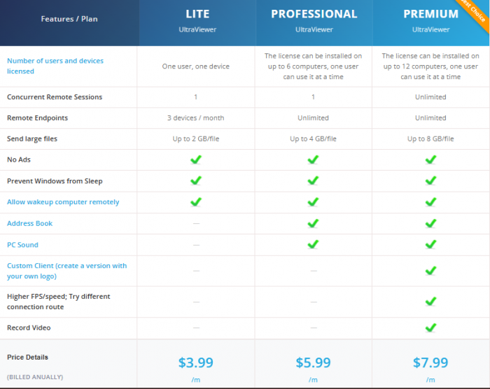 UltraViewer’s pricing model is understated. There are no forced trials, no surprise paywalls, and no “feature cliffs” that suddenly block basic usage.