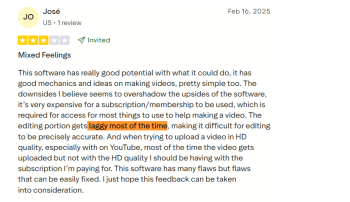 ● “Editing gets laggy most of the time… uploading and exporting in HD has become a frustrating chore.”